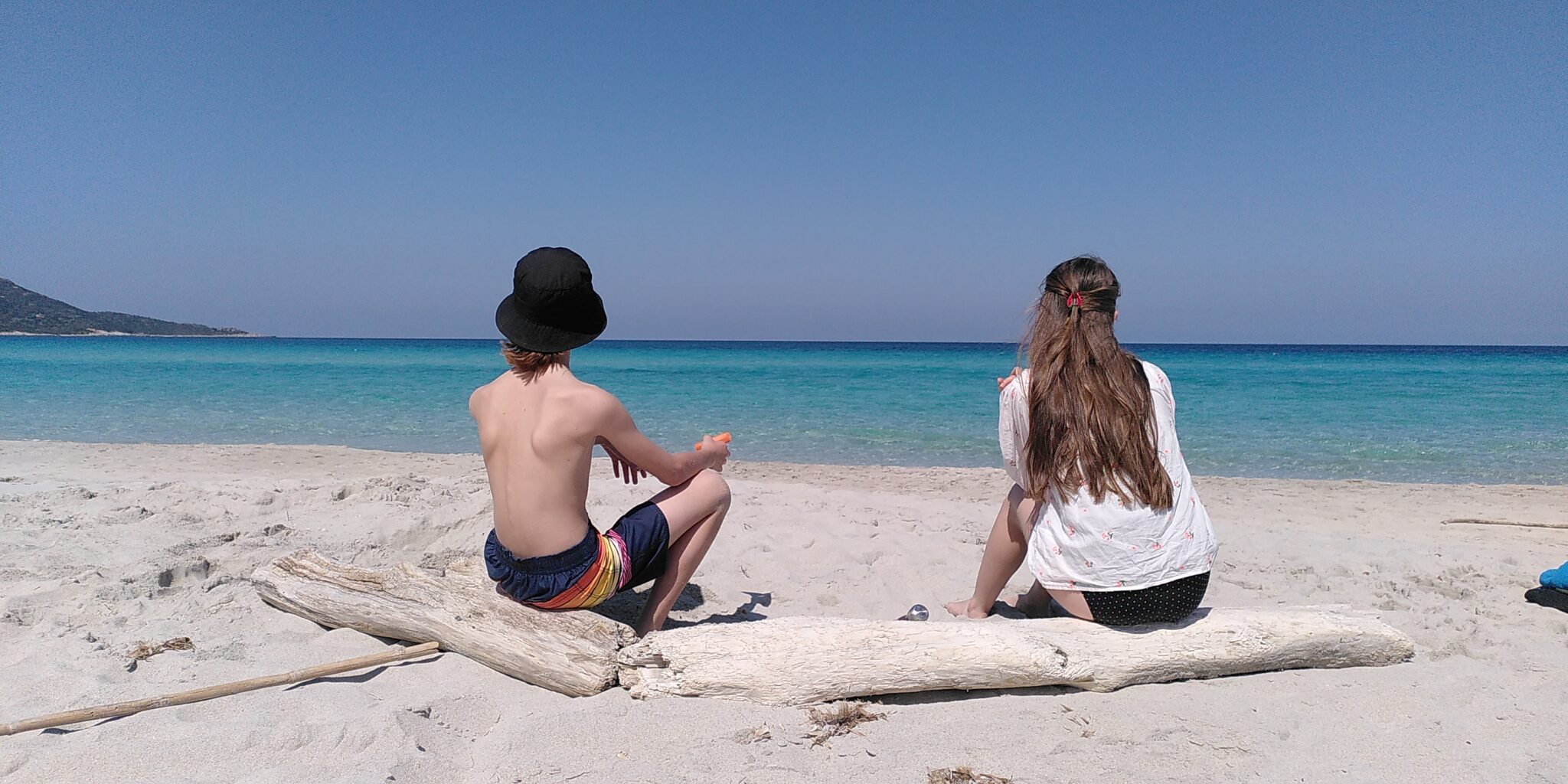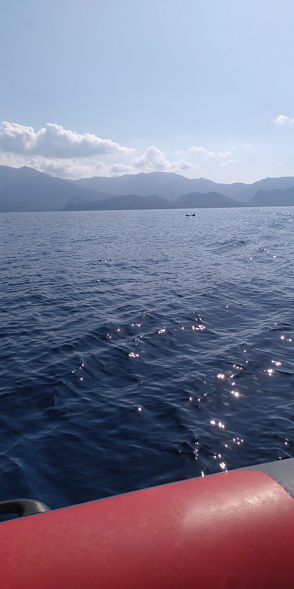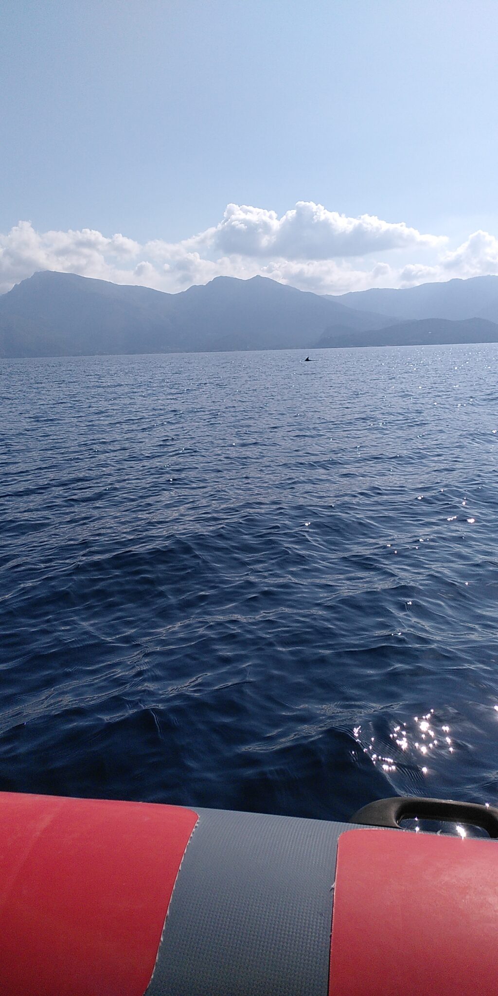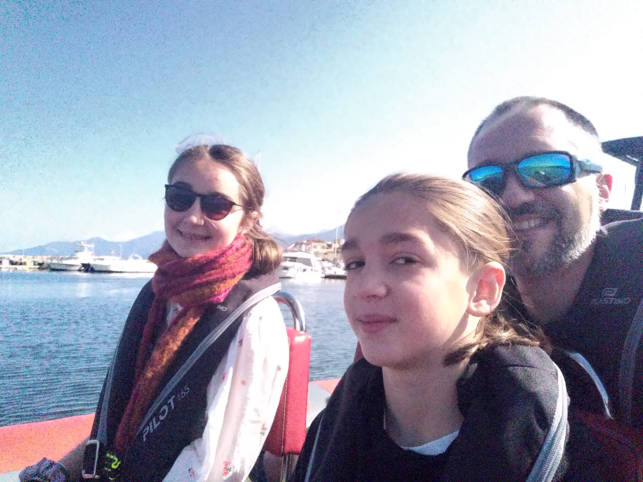Puis direction saint Florent pour acheter de quoi faire un pique-nique et aller faire notre excursion à la journée. Malheureusement un peu de monde au Leclerc, du coup le bateau m’appelle en me disant que le départ est dans 10min. On arrive rapidement et on se gare, j’envoie les enfants et moi je fais le sac en deuspi (comme dirait Gauthier…) et je les rejoins. Nous voilà partis sur un zodiac 12-16 places pour la plage de Salecca avec une traversée de 20min. On va assez vite, Lydia a oublié son pull mais ne veut pas du mien… Et on aperçoit pdt 5min des dauphins à 20-30m et même certains qui viennent vers le bateau! C’était magique ! 😍
