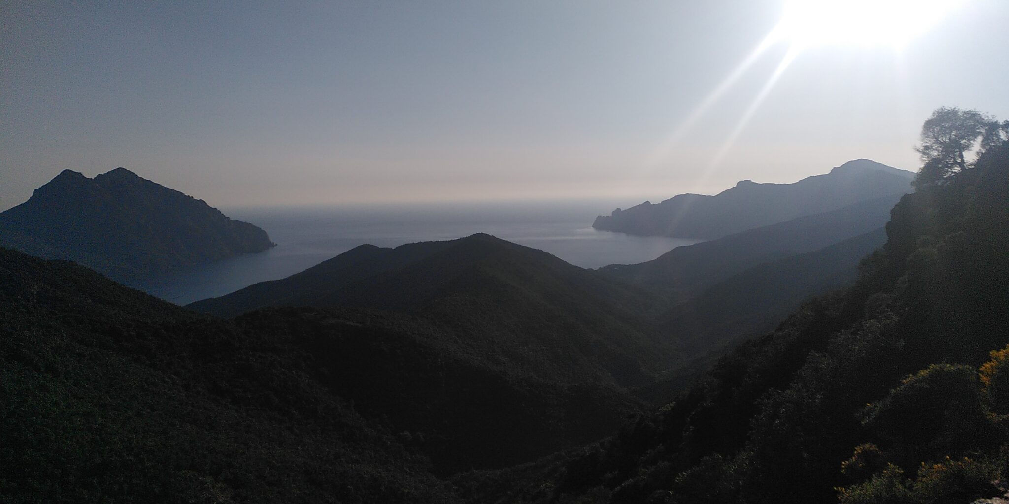 Retour au port de Saint Florent vers 16h, et là on prend le van, on se change et on file vers Porto qui est à 3h de route dans 2 bonnes heures de route de montagne, en van… La route est vraiment à tomber (au propre et au figuré 😁) et très changeante entre les paysages et les roches !