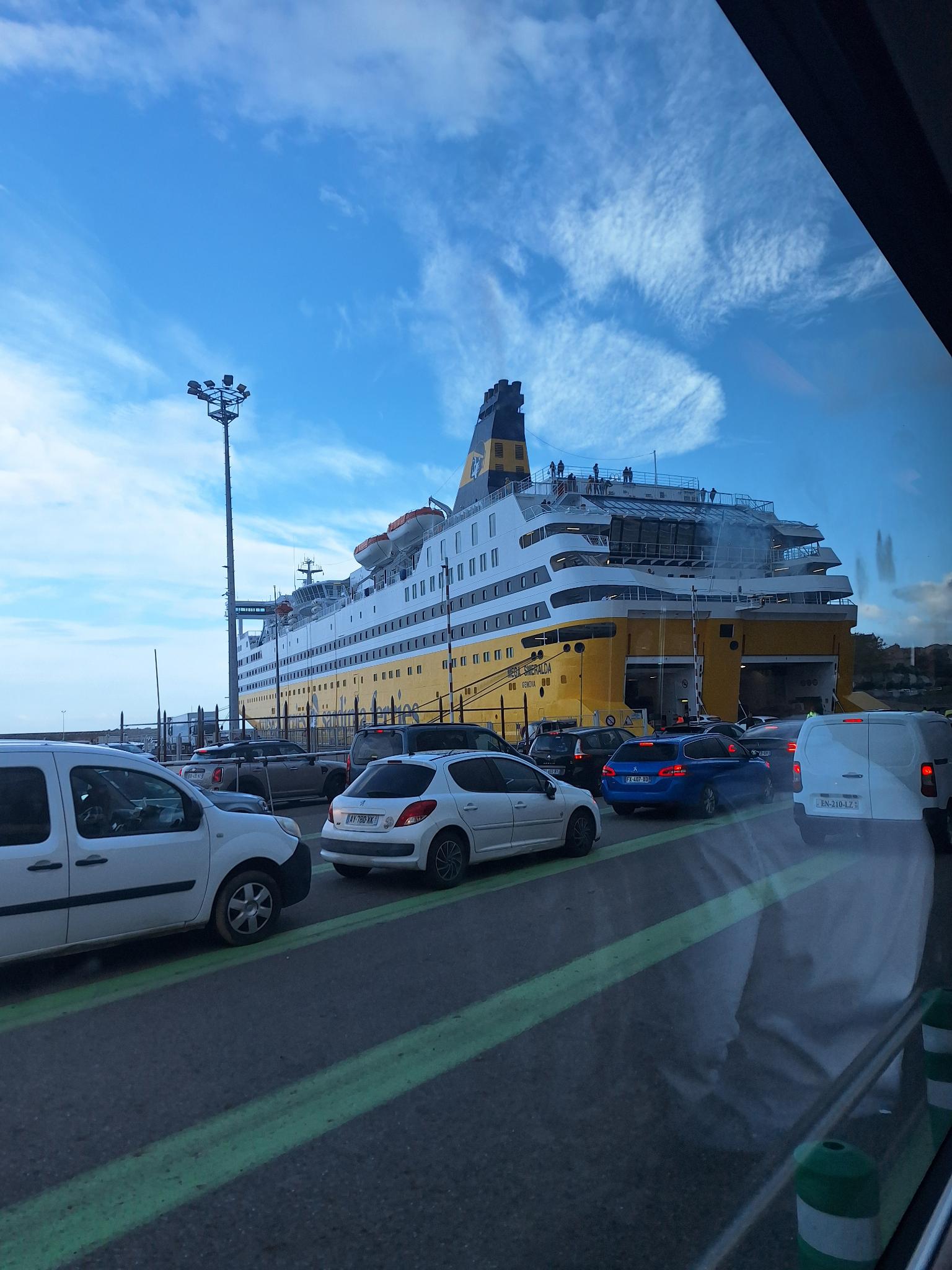 Après, il a fallu se dire au revoir… Et ça n’a pas été simple, pour les grands mais surtout pour les deux grands enfants… Beaucoup d’émotions pour tout le monde! Les cannois sont repartis à la maison pour un après-midi farniente mais surtout ménage et rangement. Et pour les Nantais, nous avons pris le chemin de Bastia. 1h30 de route pour déposer les enfants et AG au port de Bastia avec une partie des bagages. Puis, je suis retourné vers l’aéroport et rendre la voiture (en faisant le plein et le manag intérieur/extérieur), puis prendre une navette aéroport – centre ville. Et oui, il se trouve qu’il n’y avait pas de train l’après midi et juste 2 bus dans dans l’après-midi ! Puis, petit tour en ville avec Lyly pour ramener de la charcuterie et du fromage; Gauthier et AG avaient fait pareil pour le pique nique du soir et le petit dej du matin.
